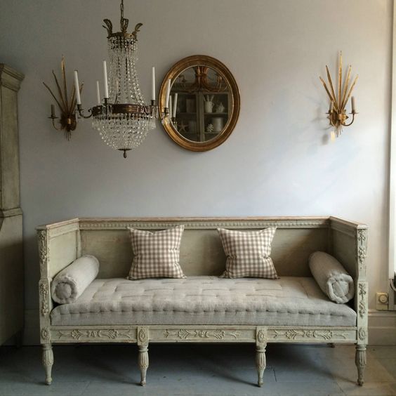 Existen dos tendencias, una aristocrática y una más provinciano con muebles más simples. Para los muebles se utiliza el pino, el abedul y a veces la caoba, con la técnica del decapado. En cuanto a los estampados, predominan los tejidos lisos o a rayas.